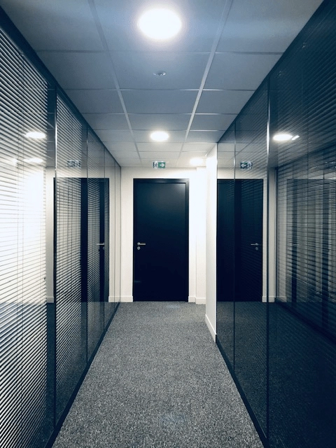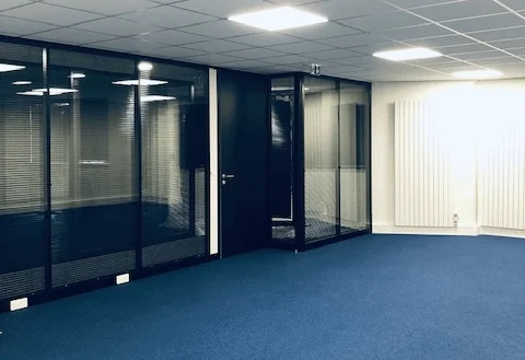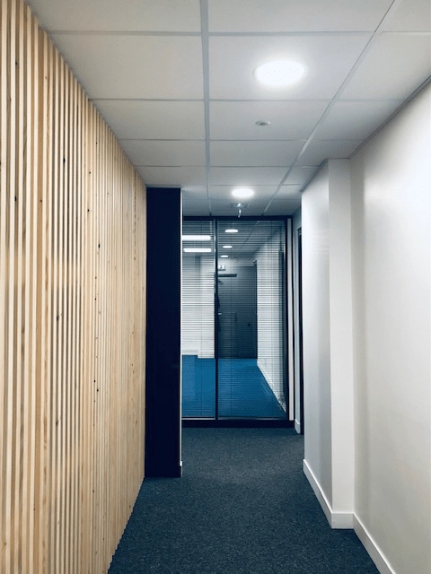 Des cloisons amovibles ont été installées pour délimiter les espaces, accompagnées d’une refonte du faux plafond et de la pose d’un nouveau sol en moquette, garantissant confort et fonctionnalité pour les étudiants.